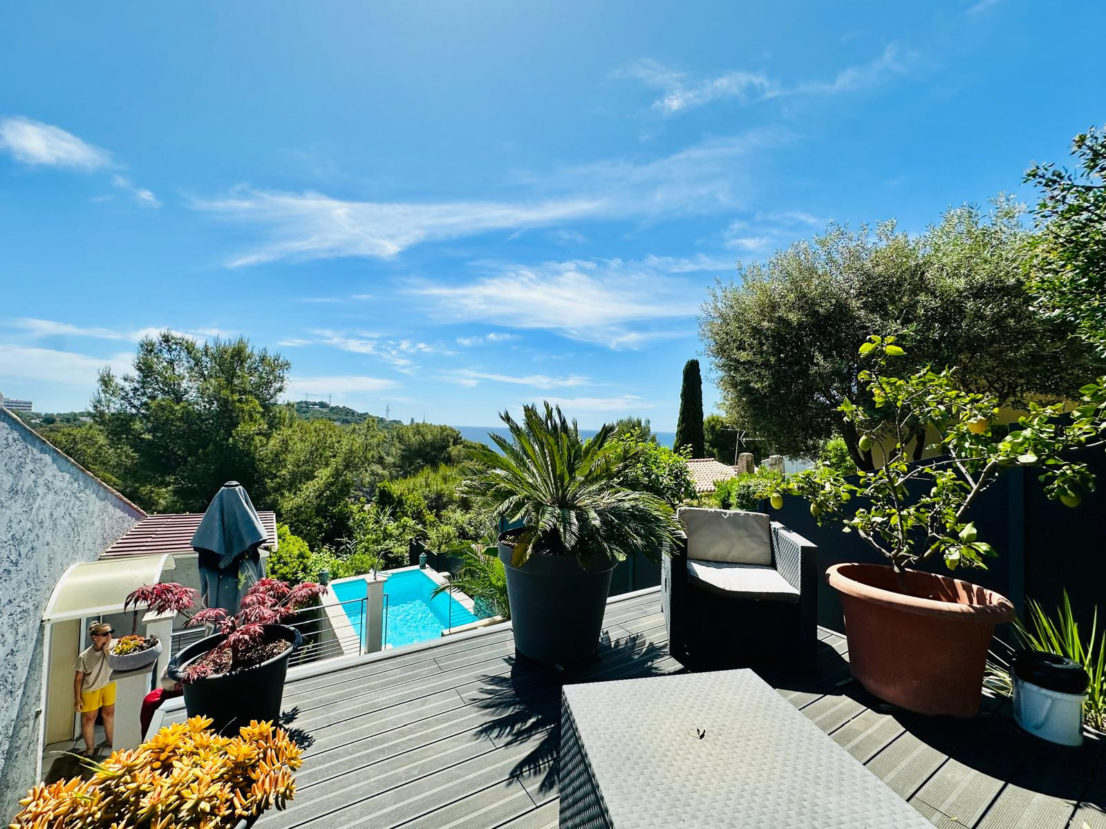 L’agence GABRIELE Immobilier vous invite dans cette maison rénovée avec goût, nichée au cœur de la presqu’île de Saint-Mandrier-sur-Mer (83430), à quelques minutes des plages. Bénéficiant d’une charmante vue mer à travers les pins, ce bien rare offre un cadre de vie exceptionnel entre calme, confort et prestations haut de gamme.