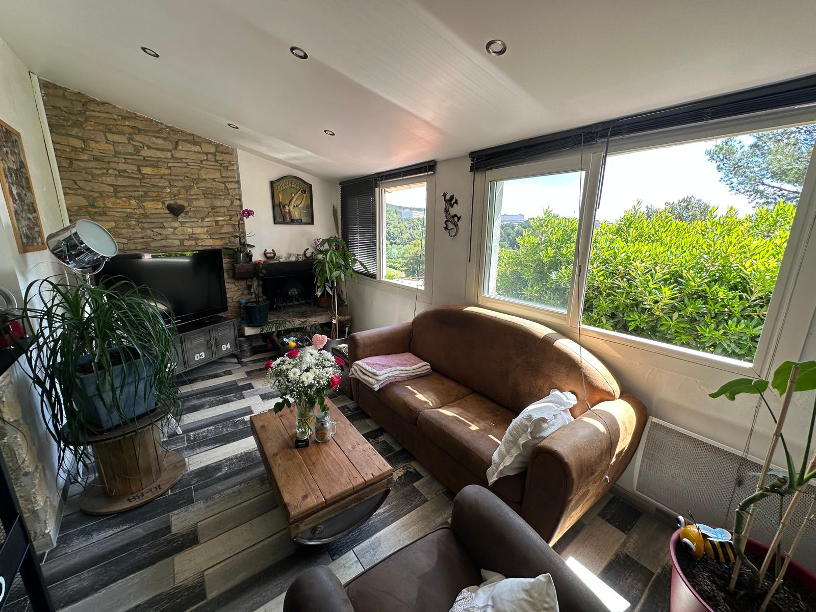 La maison de 182M² est agencée sur 3 niveaux avec 3 logements indépendants sur un terrain en restanques de 580 m², clos et arboré, maison familiale.